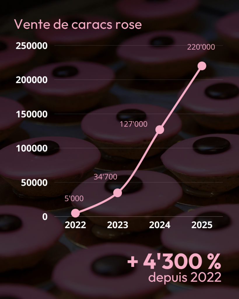 Plus de 220’000 caracs roses dégustés durant tout le mois d’octobre en Romandie, à Berne et à Bâle et CHF 170’000 récoltés pour soutenir 7 institutions accompagnant les personnes touchées par le cancer.